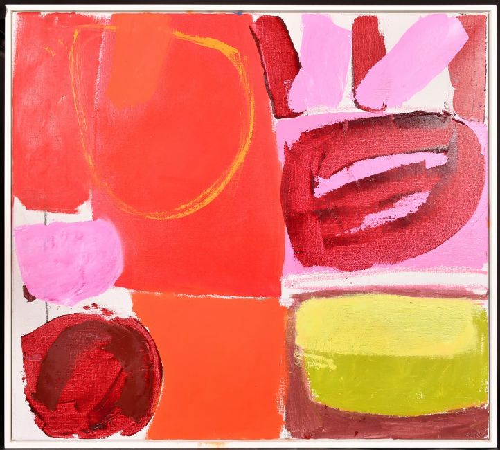 Bo Hilton (b. 1961), 'Zennor Walk', an abstract composition, oil on canvas, signed and inscribed verso, 31.5" x 35.5" (80 x 90cm).