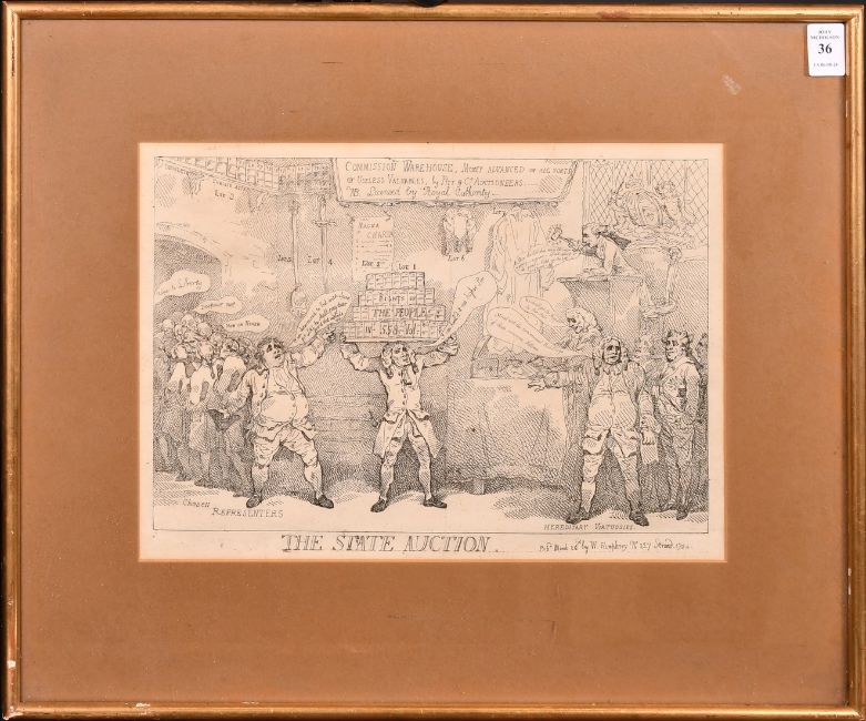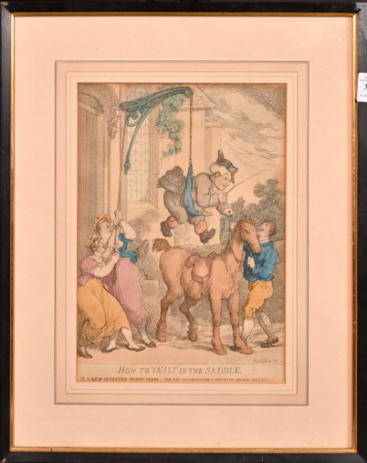 Rowlandson, Early 19th Century, 'The Statue to be Disposed of', hand coloured engraving, published by Thomas Tegg, plate size 13.5" x 10" (34 x 25cm), along with two other similar engravings.