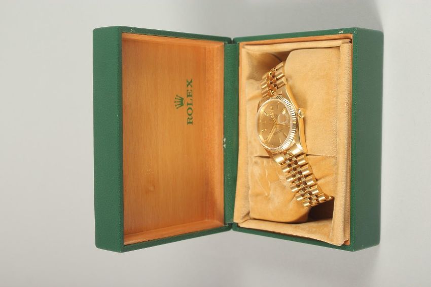 A GENTLEMAN'S 18CT YELLOW GOLD ROLEX OYSTER PERPETUAL DATEJUST WRISTWATCH.