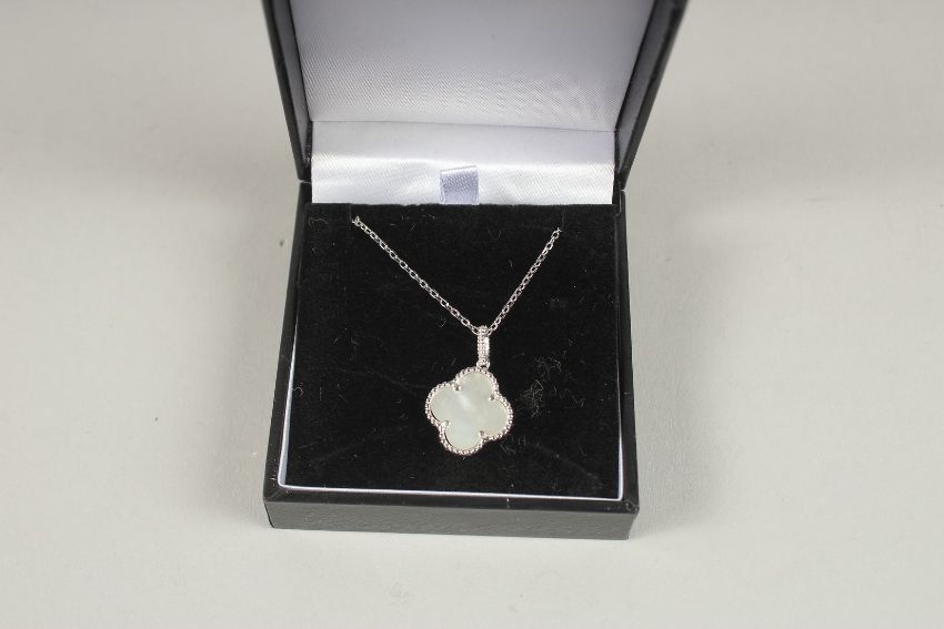 A SILVER AND MOTHER-OF-PEARL CLOVER PENDANT AND CHAIN.