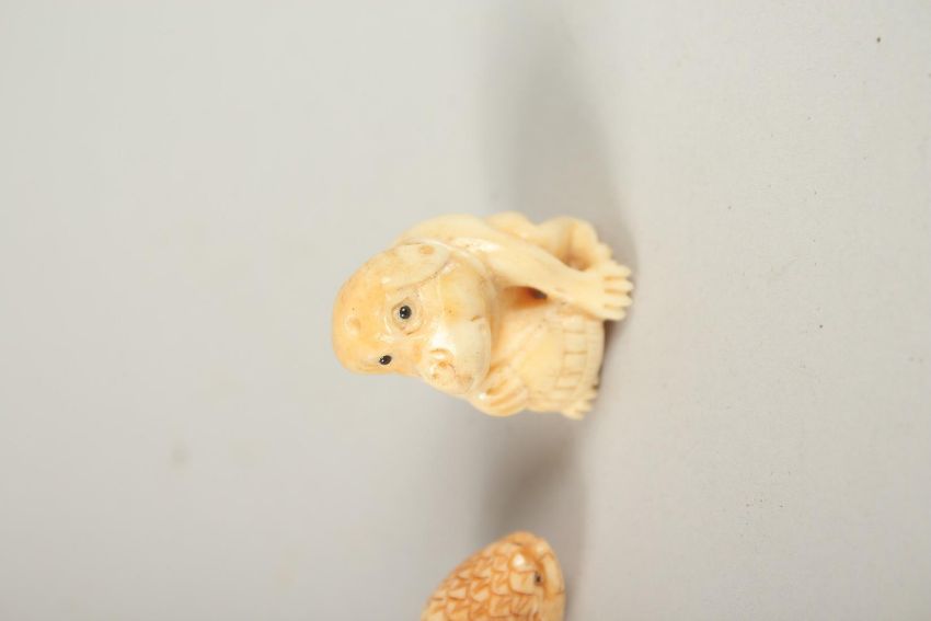 FOUR CARVED BONE NETSUKES.