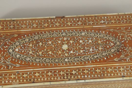 A VERY FINE 19TH CENTURY INDIAN HOSHIARPUR IVORY INLAID WOODEN BOX, 37cm x 12cm.