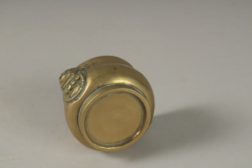 A MINIATURE 18TH CENTURY BRONZE CENSER, with lion ring handles, 5cm diameter.