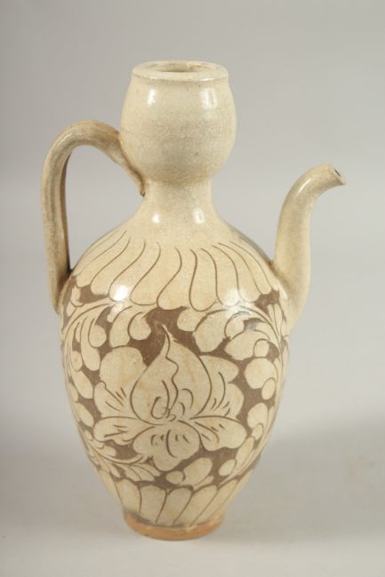 A CHINESE CIZHOU GLAZED POTTERY EWER, 25.5cm high.