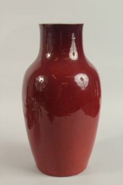 A CHINESE SANG DE BOEUF PORCELAIN VASE, 38.5cm high.