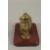 A CHINESE BRASS GROUP OF A MAN PAINTING A VASE, mounted to a rectangular red marble base, 13cm x 8cm at base.
