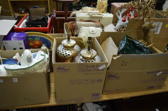 Household miscellaneous to include decorative china, handbags, Christmas decorations etc.