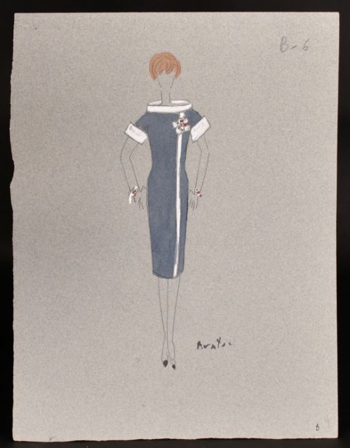 Circle of CECIL BEATON.EIGHT DESIGNS FOR DRESSES.Signed, unframed,13ins x 10ins. (33cm x 25cm).