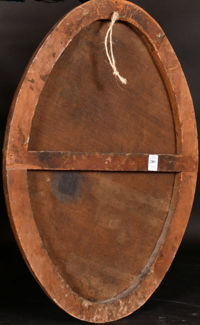18th Century, probably Spanish School, a depiction of Saint Dominic holding a lily, oil on canvas, 24" x 17" (61 x 43cm), oval, unframed, a/f.
