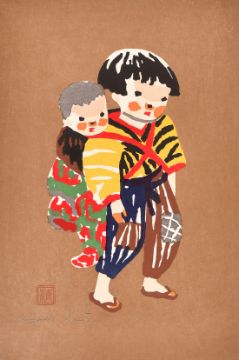 Kyoshi Saito (1907-1997) Japanese, a pair of woodcut prints each with a mother and child, both signed with a seal and both signed in pencil, 14" x 9.5" (36 x 24cm), unframed, (2).