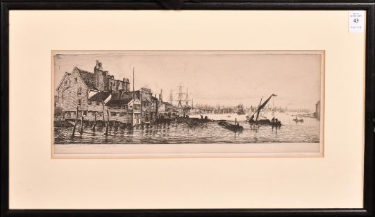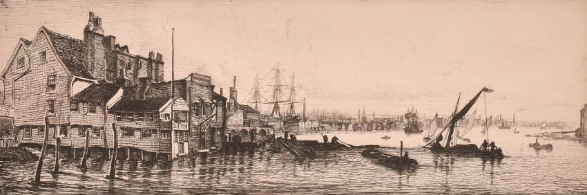 Charles William Sherborn (1831-1912), 'The Tar Brewers, Limehouse', etching, signed in the plate, plate size 5.75" x 15.25" (14.5 x 28.5cm).
