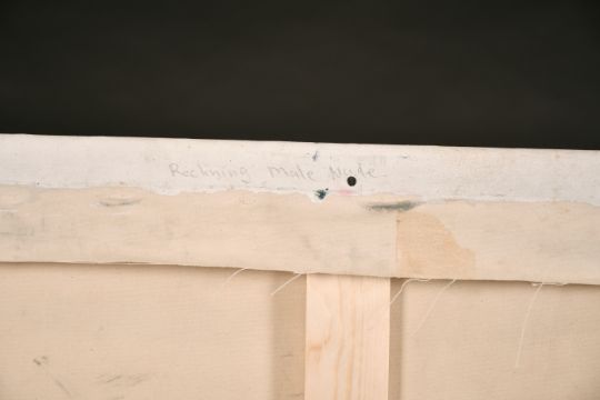 20th/21st Century, A study of a reclining male nude, oil on canvas, signed indistinctly on a canvas verso, 47" x 48".