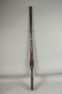 AN 18TH CENTURY FRENCH PERCUSSION CAP DOUBLE BARREL MUZZLE LOADING GUN.