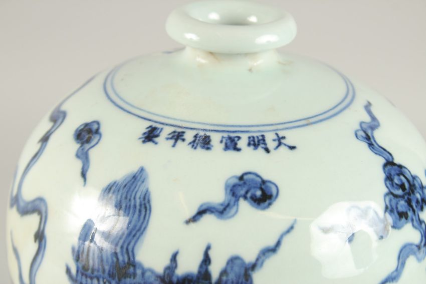 A CHINESE BLUE AND WHITE PORCELAIN DRAGON MEIPING VASE.