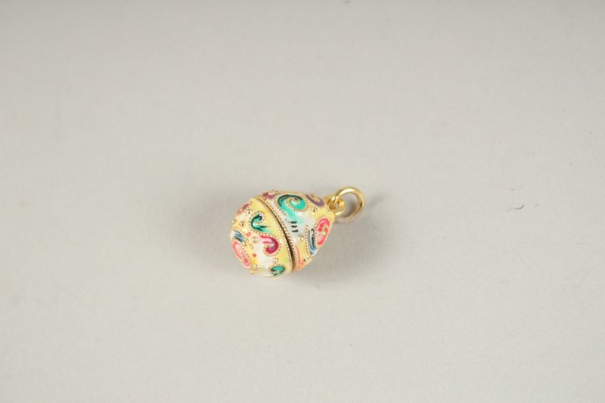 A TINY SILVER AND ENAMEL EGG PENDANT.