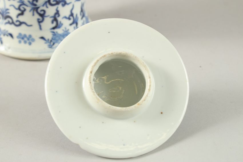 A CHINESE BLUE AND WHITE PORCELAIN LIDDED VASE, finely painted with two mirrored panels of of birds and flora, base with four-character mark, (faults), 36cm high.