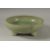 A 16TH CENTURY GREEN GLAZED DEEP CIRCULAR BOWL, raised on three lion feet. 13cm high, 30cm wide.