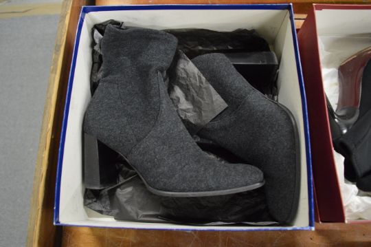Three pairs of ladies boots, boxed, size 6 together with a pair of boxed shoes.