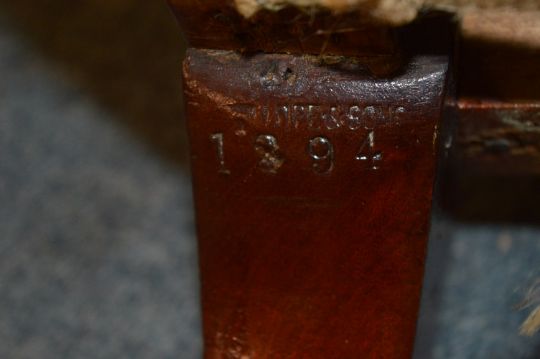 Trollop & Sons, a Victorian mahogany framed armchair, stamped to the back leg (for upholstery).