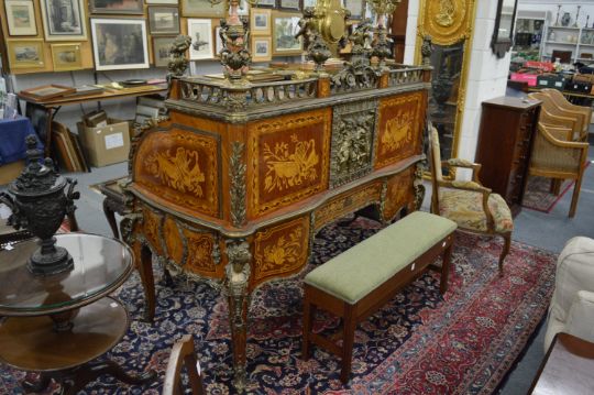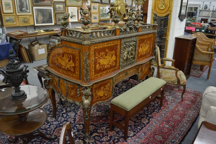 A large and impressive French design ormolu mounted and inlaid cylinder bureau.