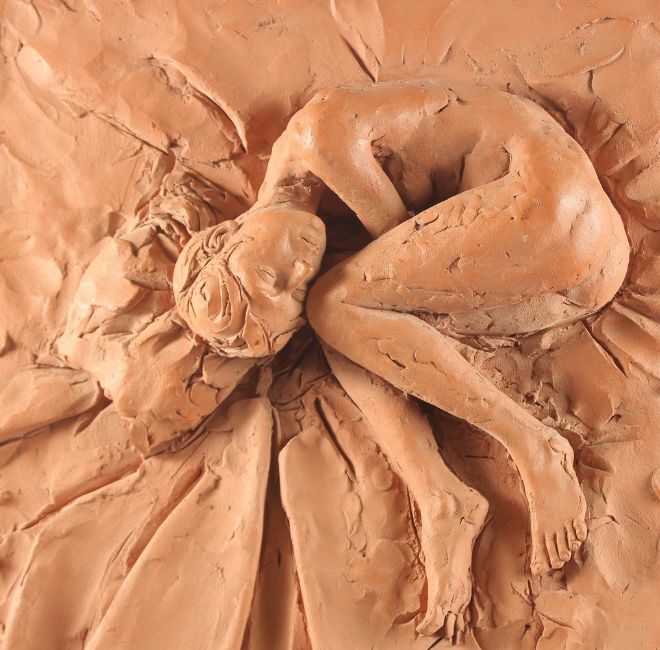 PAUL DAY (b. 1967).A sleeping female nude, terracotta.Signed and dated 1997, height - 31" (79cm), width 17.5" (44cm), depth 5.75" (14.5cm).