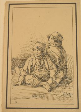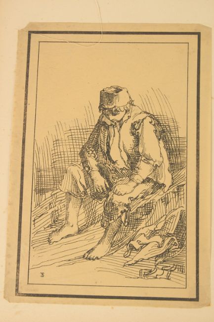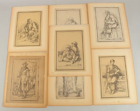 Thomas Barker of Bath, a group of 6 pen lithos of figural subjects, early 19th century, each 9.5" x 6.5", (24x16.5cm) a/f, unframed, (6).