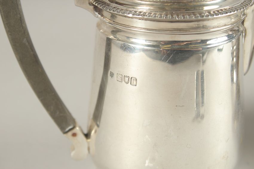 A GEORGIAN STYLE SILVER HOT WATER JUG, London 1912 and a TEAPOT, London 1913.