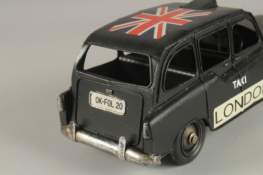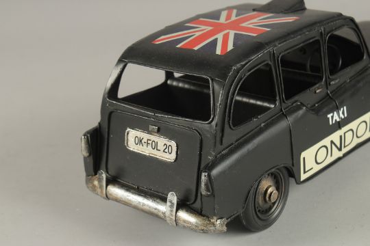 A TIN PLATE LONDON TAXI.