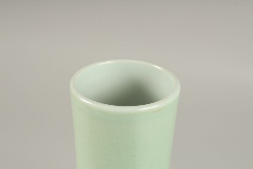 A CHINESE CELADON GLAZE PORCELAIN FLORAL BOTTLE VASE, the base with character mark, 26cm high.