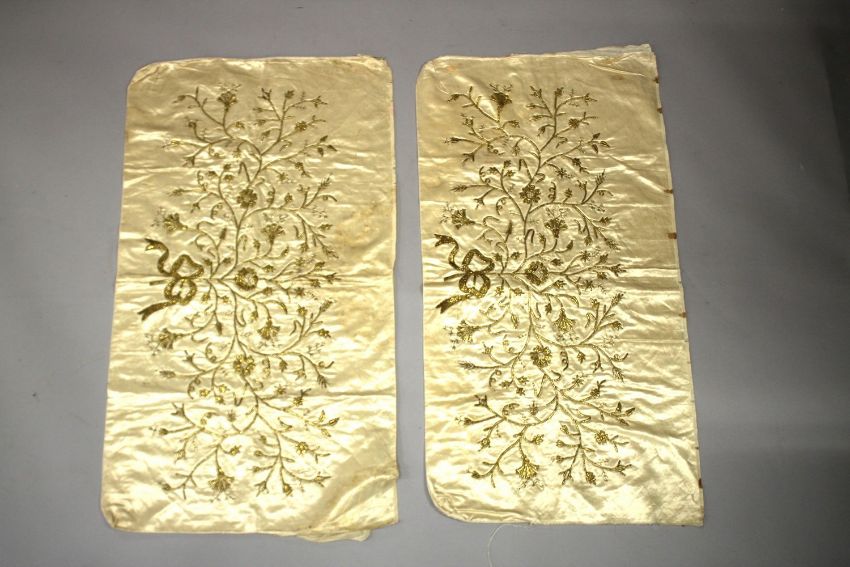 A PAIR OF OTTOMAN TURKISH PILLOW CASES, with gold embroidery.