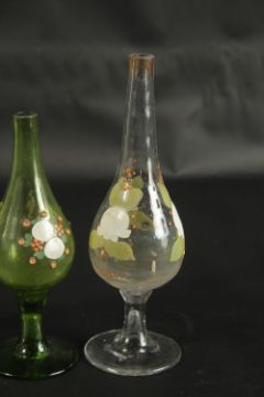 A COLLECTION OF THREE 19TH CENTURY OTTOMAN TURKISH ENAMELLED GLASS ROSEWATER SPRINKLERS, tallest 26cm high, (3).