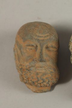 A GROUP OF THREE INDIAN GANDHARA CARVED HEADS, buddha 9.5cm high, (3).