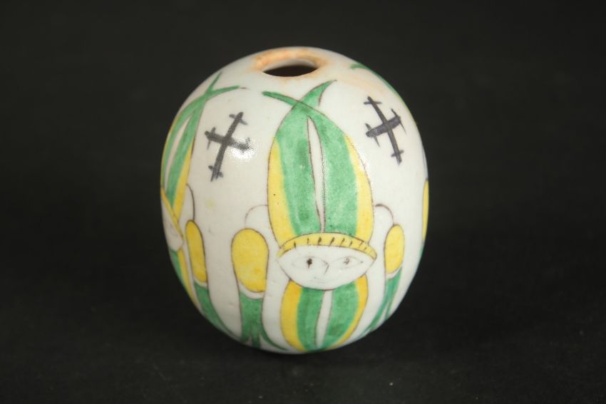 A TURKISH OTTOMAN ARMENIAN POTTERY HANGING BALL, 8cm.
