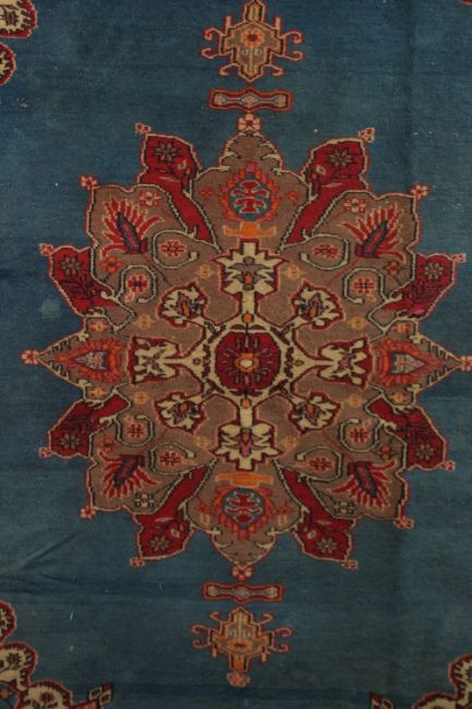 A PERSIAN BLUE GROUND AND RED DESIGN RUG, 180cm x 122cm.