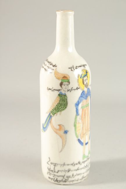 A TURKISH ARMENIAN GLAZED POTTERY BOTTLE, 32cm high.
