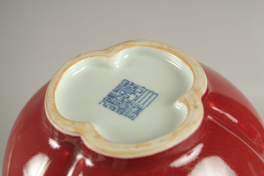 A CHINESE IRON RED GLAZE TULIP VASE, the base with character mark, 20cm high.