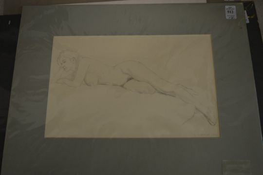 George Weissbort, reclining female nude, pencil study, mounted but unframed and three other similar.