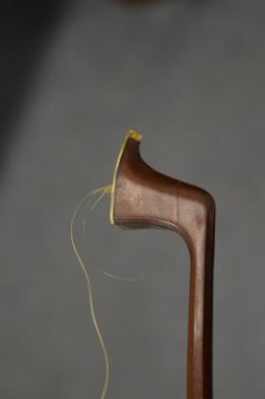 A cello bow stamped Simpson, Birmingham, one end repaired.