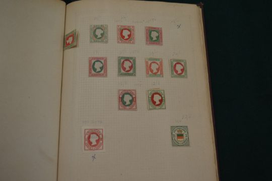 A small stamp album and contents.