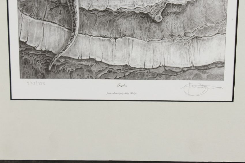 Gecko, signed, 273/550 and Young Caiman, signed, 738/850.
