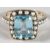 A 9CT GOLD, BLUE TOPAZ AND SEED PEARL RING.