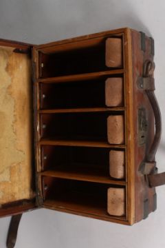 A LEATHER FIVE COMPARTMENT GUN CASE.