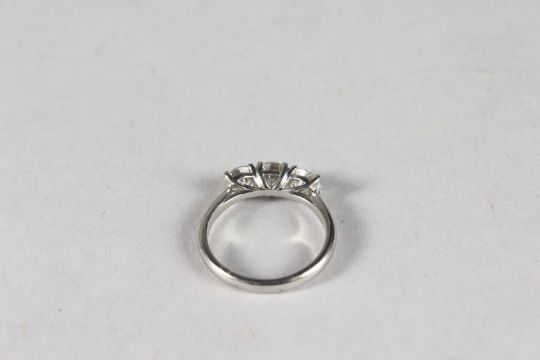 A PLATINUM AND DIAMOND THREE-STONE RING 1.53CT.