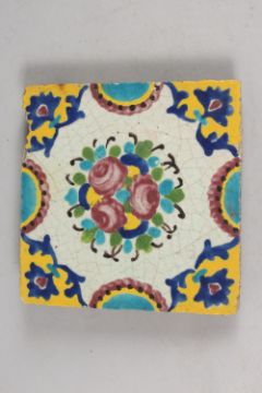 A 19TH CENTURY PERSIAN GLAZED POTTERY TILE, 20cm square.