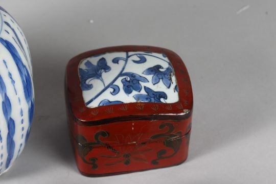 A COLLECTION OF FOUR PIECES OF ORIENTAL PORCELAIN, together with a collection of four wooden stands, (8).
