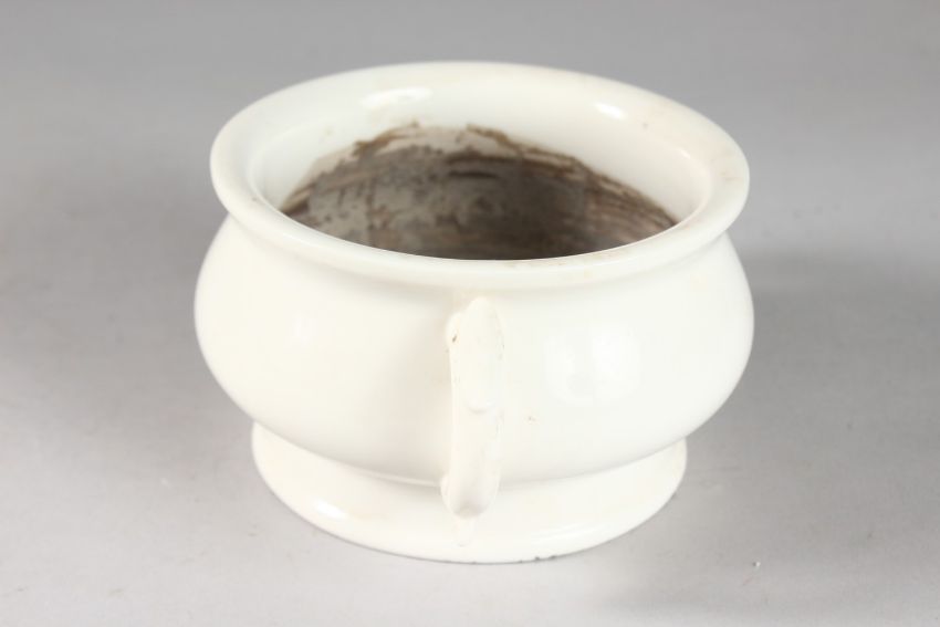 A CHINESE BLANC DE CHINE TWIN HANDLE CENSER, with impressed mark to base, 17cm handle to handle.