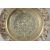 A HIGHLY DECORATIVE EMBOSSED AND ABALONE-INLAID BRASS DISH, with central roundel of archaic style designs, 28cm diameter.