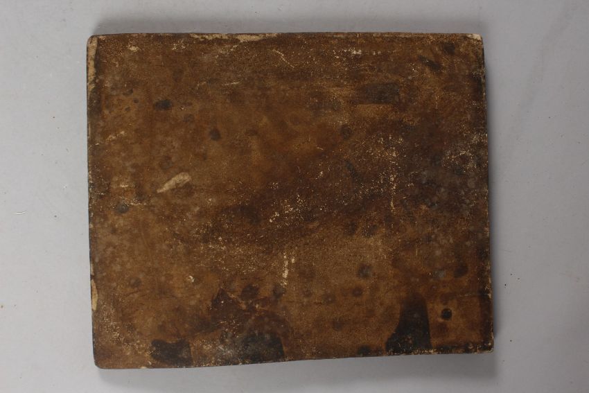 A 19TH CENTURY PERSIAN QAJAR MOULDED GLAZED POTTERY TILE, depicting a seated royal figure with foliate border, 33.5cm x 27cm.