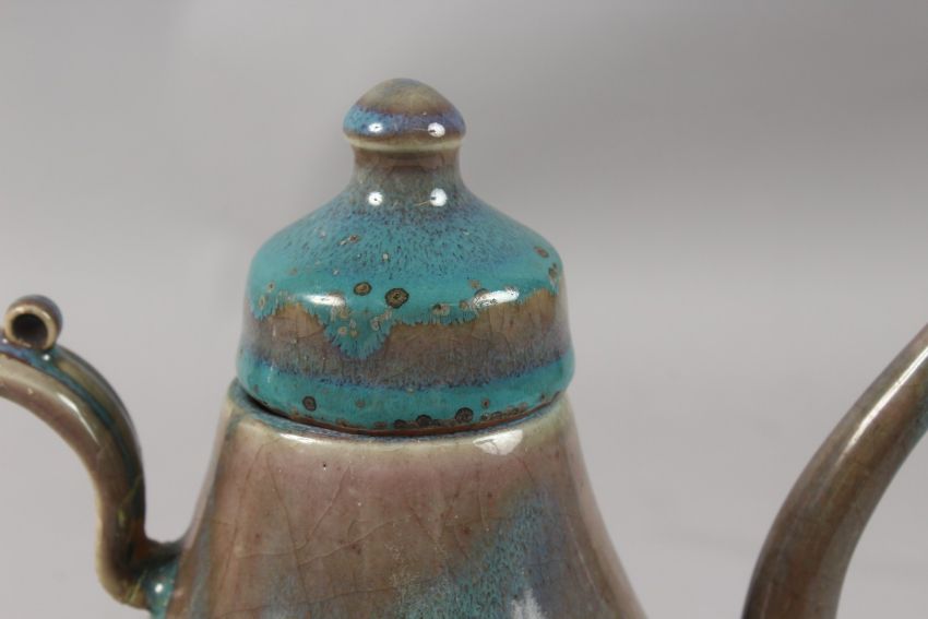 A CHINESE 'ROBIN'S EGG' GLAZE POTTERY TEAPOT, 22cm high.