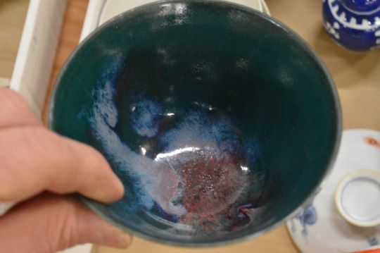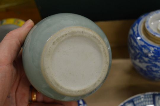 A collection of Oriental porcelain to include blue and white bowl, jar and cover, celadon bowl etc.